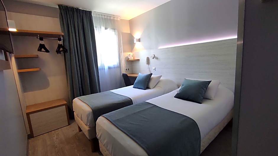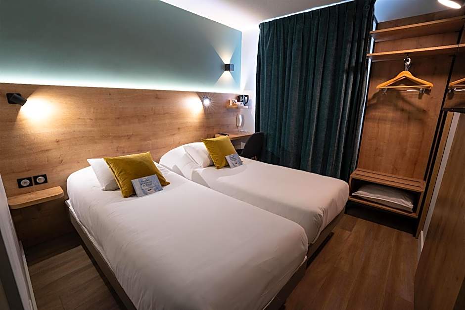 This twin room has air conditioning, electric kettle and soundproofing. The bathroom has a shower. A courtesy tray with tea, coffee and infusions is available in the room.